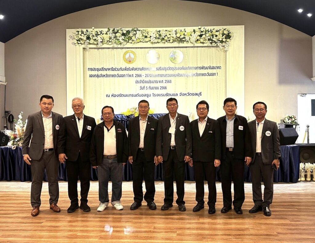 วันอังคารที่ 5 กันยายน พ.ศ. 2566 ดร.สมบูรณ์ ตรีพรเจริญ ประธานสภาอุตสาหกรรมจังหวัดชลบุรี นายกิตติวุฒิ ศศิวิมลพันธุ์ เลขาธิการสภาอุตสาหกรรมจังหวัดชลบุรีและนายณัฏฐ์ธน สาตรจีนพงษ์ รองประธานสภาอุตสาหกรรมจังหวัดชลบุรี เข้าร่วมประชุมปรึกษาหารือร่วมกันเพื่อรับฟังความคิดเห็นในการปรับปรุงวัตถุประสงค์และทิศทางการพัฒนาในอนาคตของกลุ่มจังหวัดภาคตะวันออก 1 (พ.ศ. 2566 – 2570) และการทบทวนแผนพัฒนากลุ่มจังหวัดภาคตะวันออก 1 (พ.ศ. 2566-2570) ประจำปีงบประมาณ พ.ศ. 2568 ณ ห้องรัตนแกรนด์โรงแรมรัตนชล จังหวัดชลบุรี
