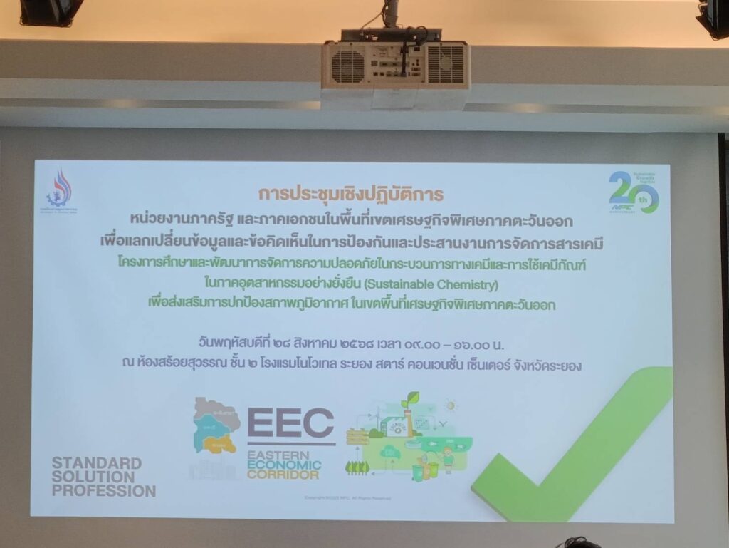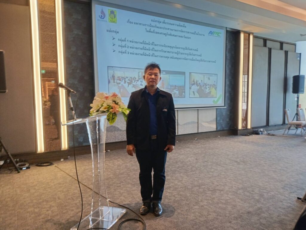 การประชุมครั้งนี้ทางบริษัท เอ็นพีซี เซฟตี้ แอนด์ เอ็นไวรอนเมนทอล เซอร์วิส จำกัด ได้รับมอบหมายจากกรมโรงงานอุตสาหกรรมในการเป็นที่ปรึกษาดำเนินงานโครงการศึกษาและพัฒนาการจัดการคามปลอดภัยในกระบวนการทางเคมีและการใช้เคมีภัณฑ์ในภาคอุตสาหกรรมอย่างยั่งยืน เพื่อส่งเสริมการปกป้องสภาพภูมิอากาศในเขตพื้นที่เศรษฐกิจพิเศษภาคตะวันออก ปีงบประมาณ พ.ศ.2568 และการประชุมครั้งนี้เป็นการประชุมเชิงปฏิบัติการหน่วยงานภาครัฐและเอกชน เพื่อแลกเปลี่ยนข้อมูลและข้อคิดเห็นในการป้องกันและประสานงานการจัดการสารเคมี